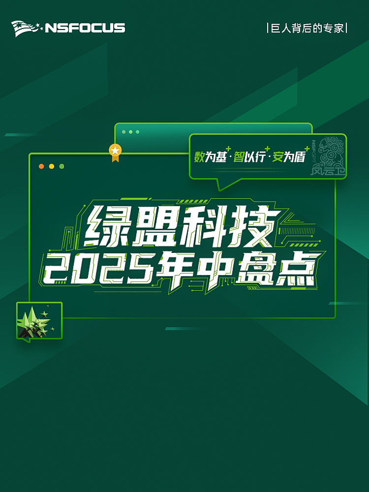 ? 2025 NSFOCUS 綠盟科技 www.nsfocus.com All Rights Reserved . 京公網(wǎng)安備 11010802021605號(hào) 京ICP備14004349號(hào) 京ICP證110355號(hào)
